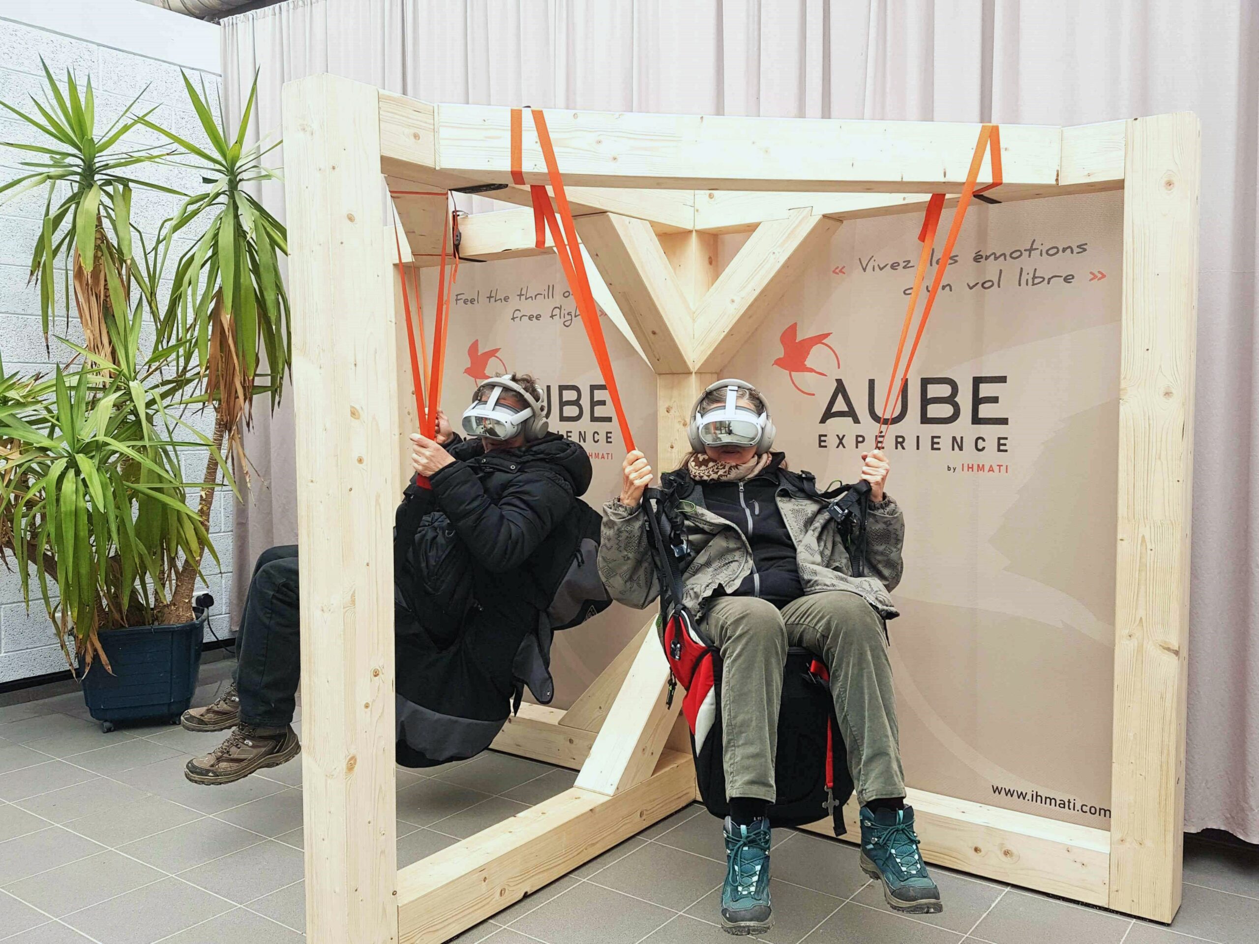 Depuis 2024, nous permettons à des lieux accueillant du public de proposer nos systèmes de vol en immersion « Aube Expérience » par le biais de mise à disposition.
